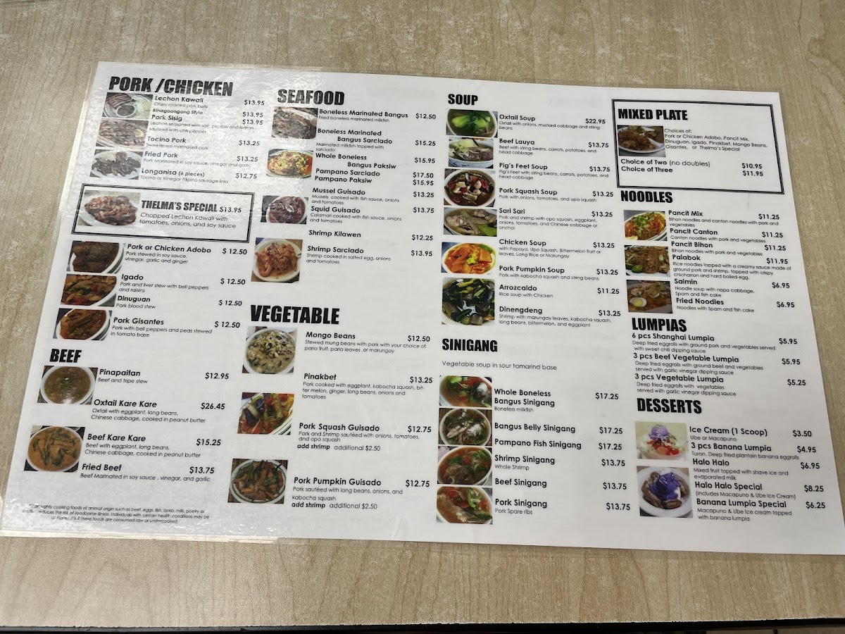 Thelma's Restaurant Menu
